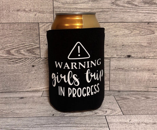Black Koozi - "Warning: Girls Trip in Progress" - Fun Gift for Bachelorette Parties