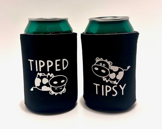 Tipped & Tipsy Cow Koozie Set | Beer Can Cooler | Cow Gift | Beverage Chiller | Coozi