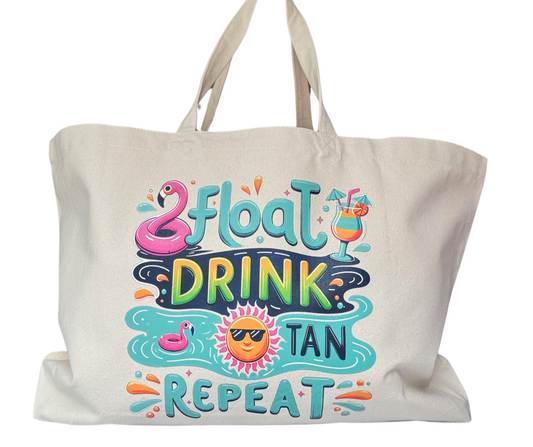 Float, Drink, Tan, Repeat – Jumbo Canvas Tote Bag