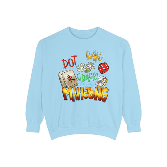 Mahjong Tiles Crewneck Sweatshirt — "Dot Bam Crack" Design with Tiles & Red Die