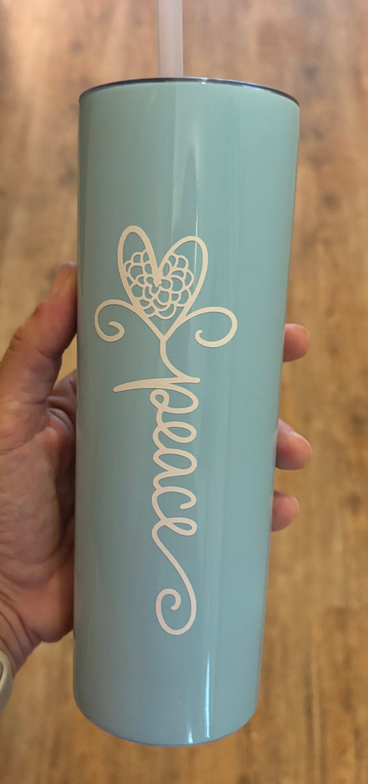 Peace | 16 oz Skinny Tumbler Set - Floral Graphic Stainless Steel Skinny Water Bottle with Straw