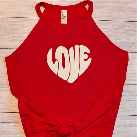 Red High-Neck Workout Tank Top with LOVE Design – Valentine’s Day Fitness Shirt