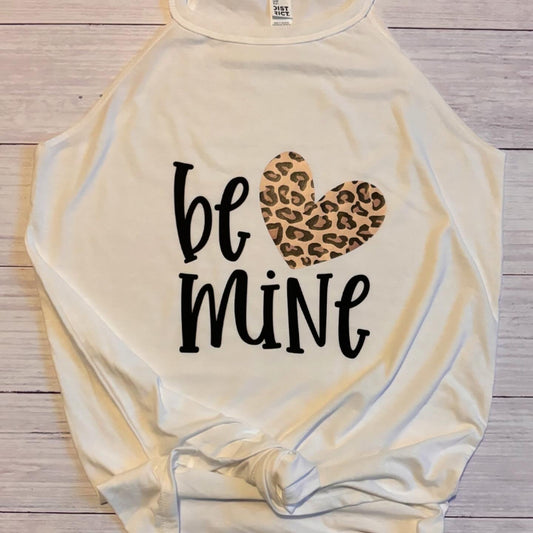Be Mine White Rocker Workout Tank Top with Animal Print Heart – Fitness Valentine’s Day Shirt