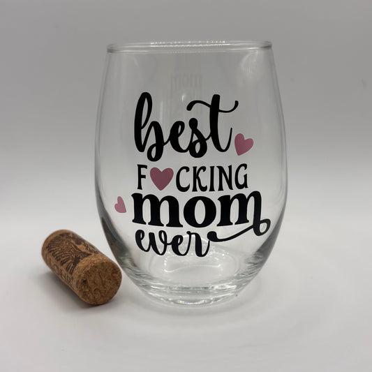 Best F*cking Mom Ever Wine Stemless Wine Glass – 15 oz