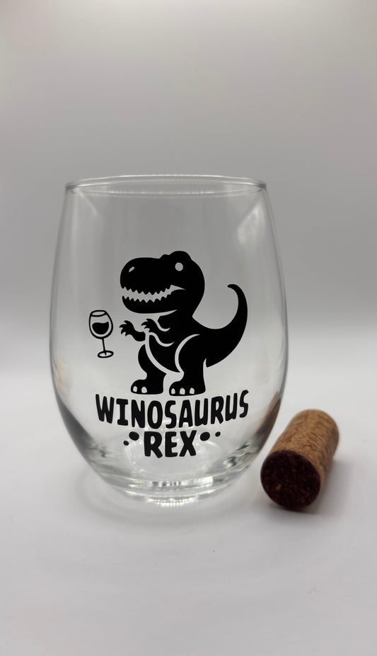 Winosaurus Rex Stemless Wine Glass – 15 oz | Funny Dinosaur Wine Glass | T-Rex Lover Gift